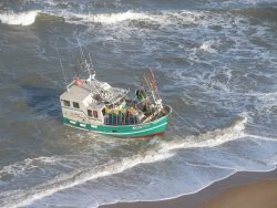 Actuellement le fileyeur est échoué sur le sable à environ 5 km dans le nord des Sables D’Olonne et présente une légère gîte sur son tribord. Il n’y a pas de dégât sur la coque et aucune trace de pollution n’a été relevée.