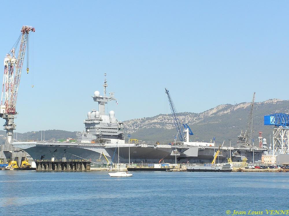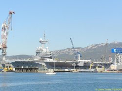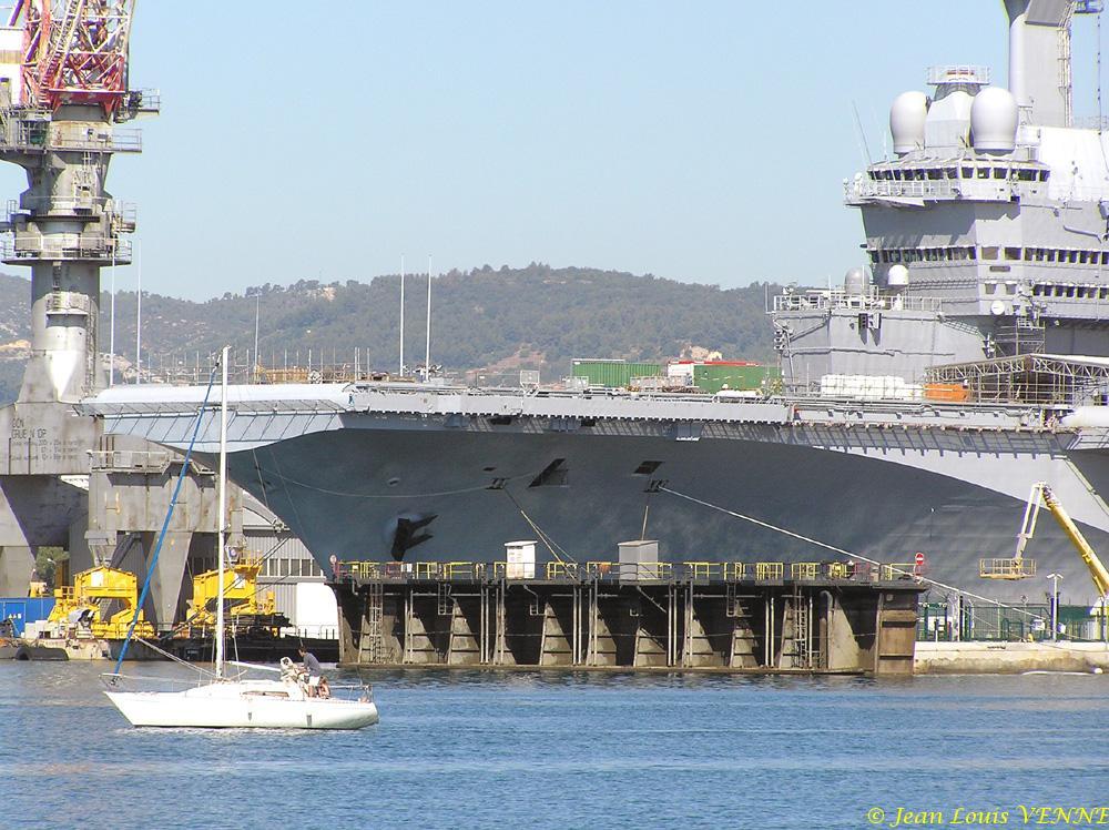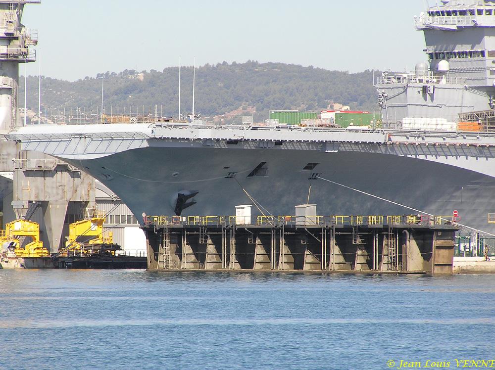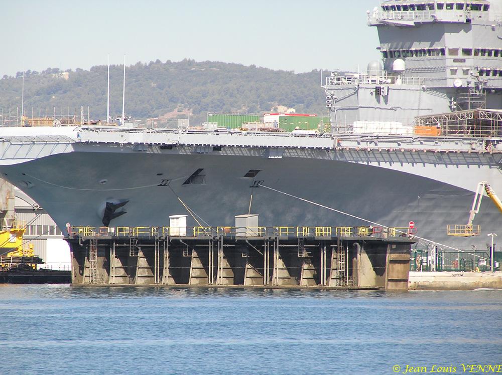 En prévision de sa sortie de bassin le 22 aout, le porte-avions Charles de Gaulle a été mis à flot et la porte du bassin ouverte ce jeudi.