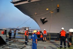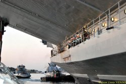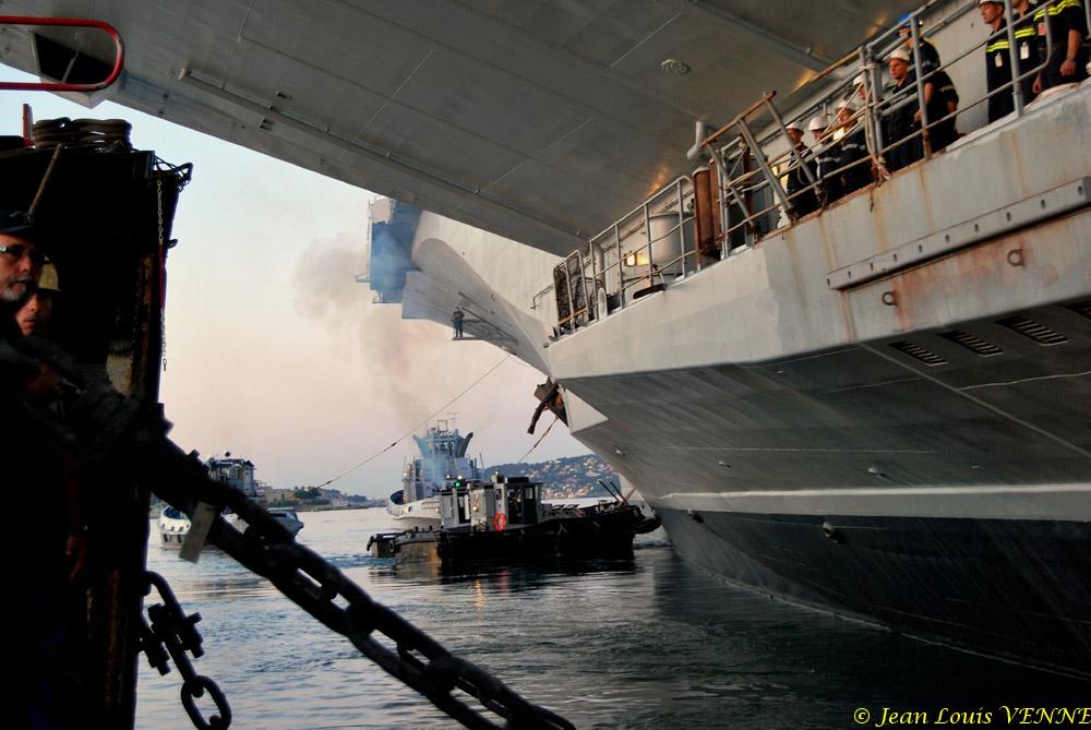 C’est vers 6 heures et demi du matin que la sortie du bassin du porte-avions nucléaire Charles de Gaulle a commencé le 22 aout dernier.