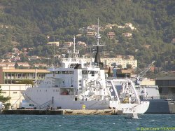 Le Beautemps-Beaupré, le bâtiment hydrographique normalement basé à Brest, effectue actuellement une escale à Toulon.