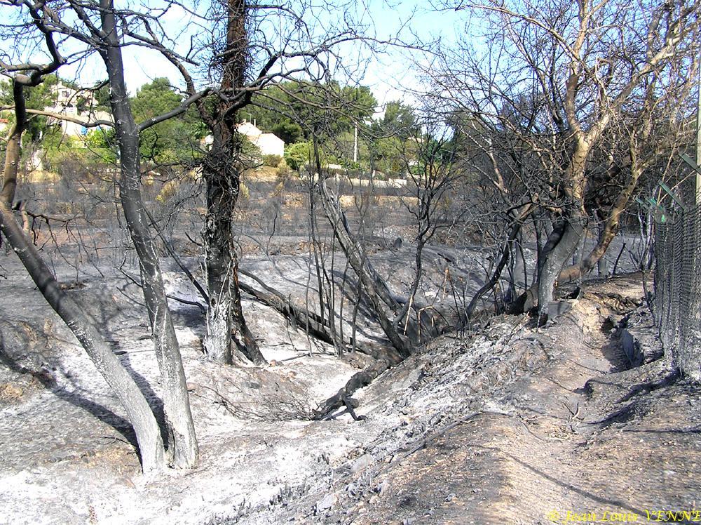 Jean-Louis Venne est allé prendre des photos des dégâts causé par l’incendie de samedi dernier. Le feu, qui avait démarré en centre-ville de St Mandrier, est remonté le long de la colline puis est redescendu jusqu’à la mer. Heureusement, il n’a fait aucun victime et n’a détruit aucune maison.
