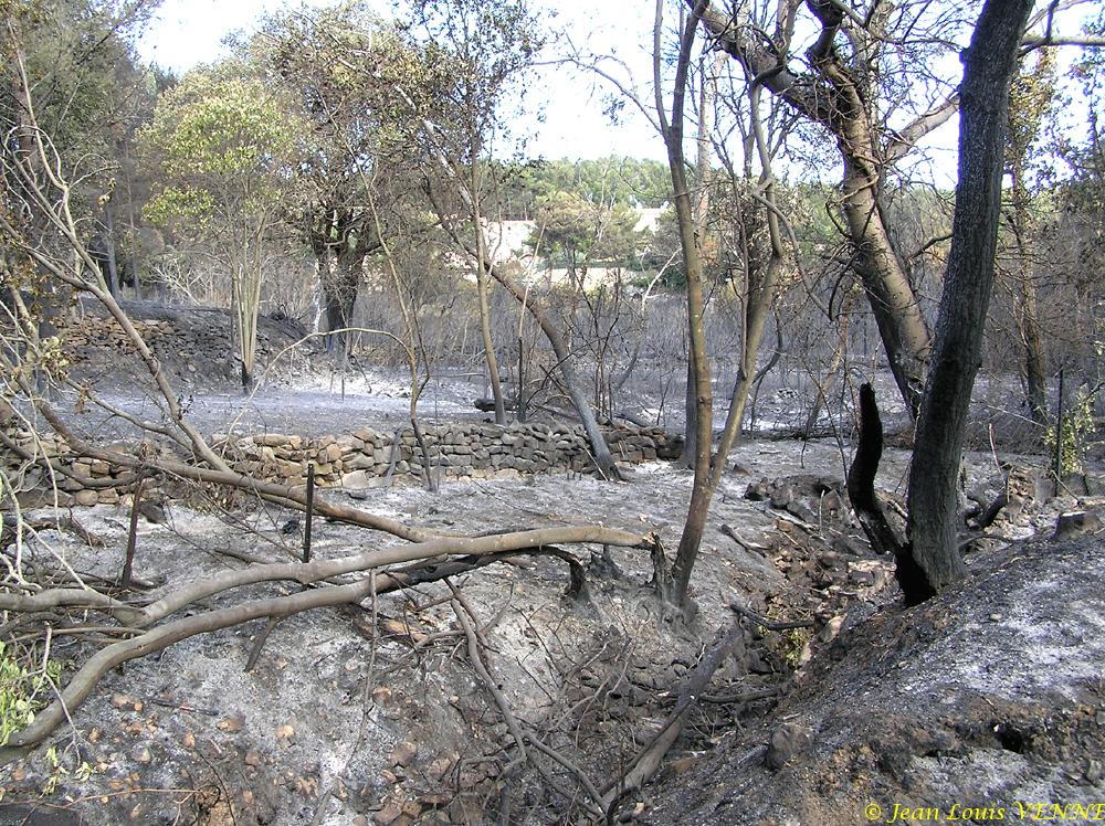 Jean-Louis Venne est allé prendre des photos des dégâts causé par l’incendie de samedi dernier. Le feu, qui avait démarré en centre-ville de St Mandrier, est remonté le long de la colline puis est redescendu jusqu’à la mer. Heureusement, il n’a fait aucun victime et n’a détruit aucune maison.