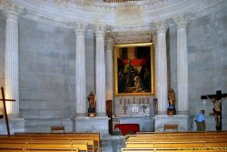 La chapelle St Louis du CIN St Mandrier Façade principale. © Diocèse aux armées La chapelle Saint Louis est construite à flanc de colline, côté nord, sous le sémaphore de Cépet, face à Toulon et sa célèbre rade, dans un écrin de verdure qui fut longtemps le jardin botanique de l’hôpital militaire. L’édifice, de style néo-classique, est une œuvre d’art méconnue mais que les spécialistes considèrent comme un pièce maîtresse de l’architecture religieuse provençale du XIXè siècle.