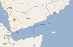 - Point : 12 15N 045E – Point : 12 35N 045E – Point : 13 35N 049E – Point : 13 40N 049E – Point : 14 10N 050E – Point : 14 15N 050E – Point : 14 35N 053E – Point : 14 45N 053E.