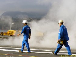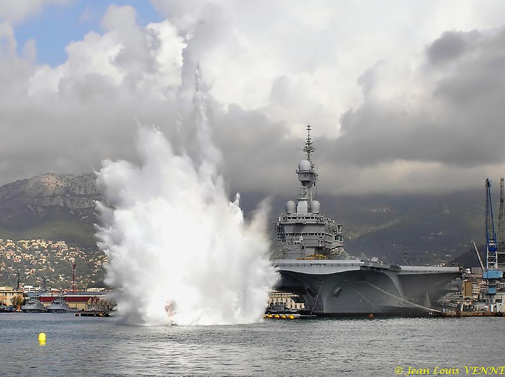 Deuxième semaine des essais de catapultes sur le porte-avions Charles de Gaulle. Pour chacune des 2 catapultes, ce ne sont pas moins de 28 essais qui doivent être effectués, dans diverses configurations de poids et de vitesse.