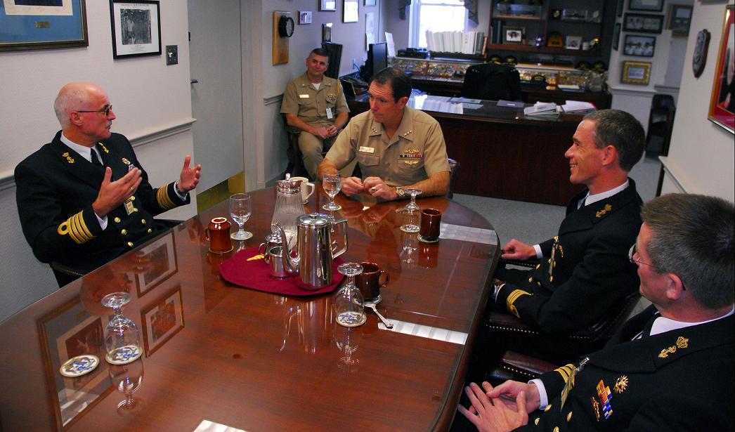 Au cours de cette escale, le commandant des forces sous-marines néerlandaises, le Capt. Peter de Harder (à gauche sur la photo), a rencontré le vice-amiral John J. Donnelly, commandant des forces sous-marines américaines, au cours d’une visite et d’un repas. Le commandant du Walrus, le Lt. Cmdr. Geordie Klein, et le Cmdr. Jeroen van Zaalen, officier de plannification des sous-marins néerlandais, étaient aussi présents.
