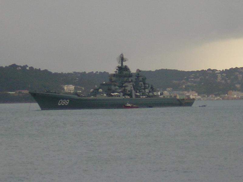 Le croiseur lance-missiles Pierre le Grand effectue une escale à Toulon du 5 au 8 novembre. Le Pierre le Grand est mouillé devant les plages du Mourillon, son tirant d’eau lui interdisant d’accoster dans le port.