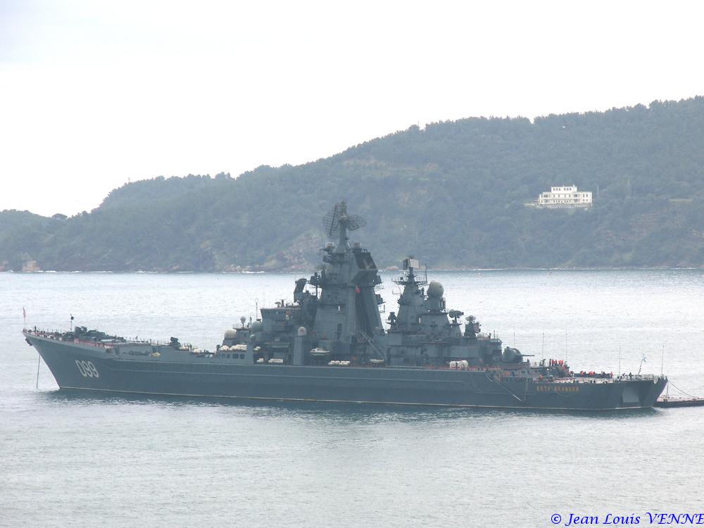 Le croiseur lance-missiles Pierre le Grand effectue une escale à Toulon du 5 au 8 novembre. Le Pierre le Grand est mouillé devant les plages du Mourillon, son tirant d’eau lui interdisant d’accoster dans le port.