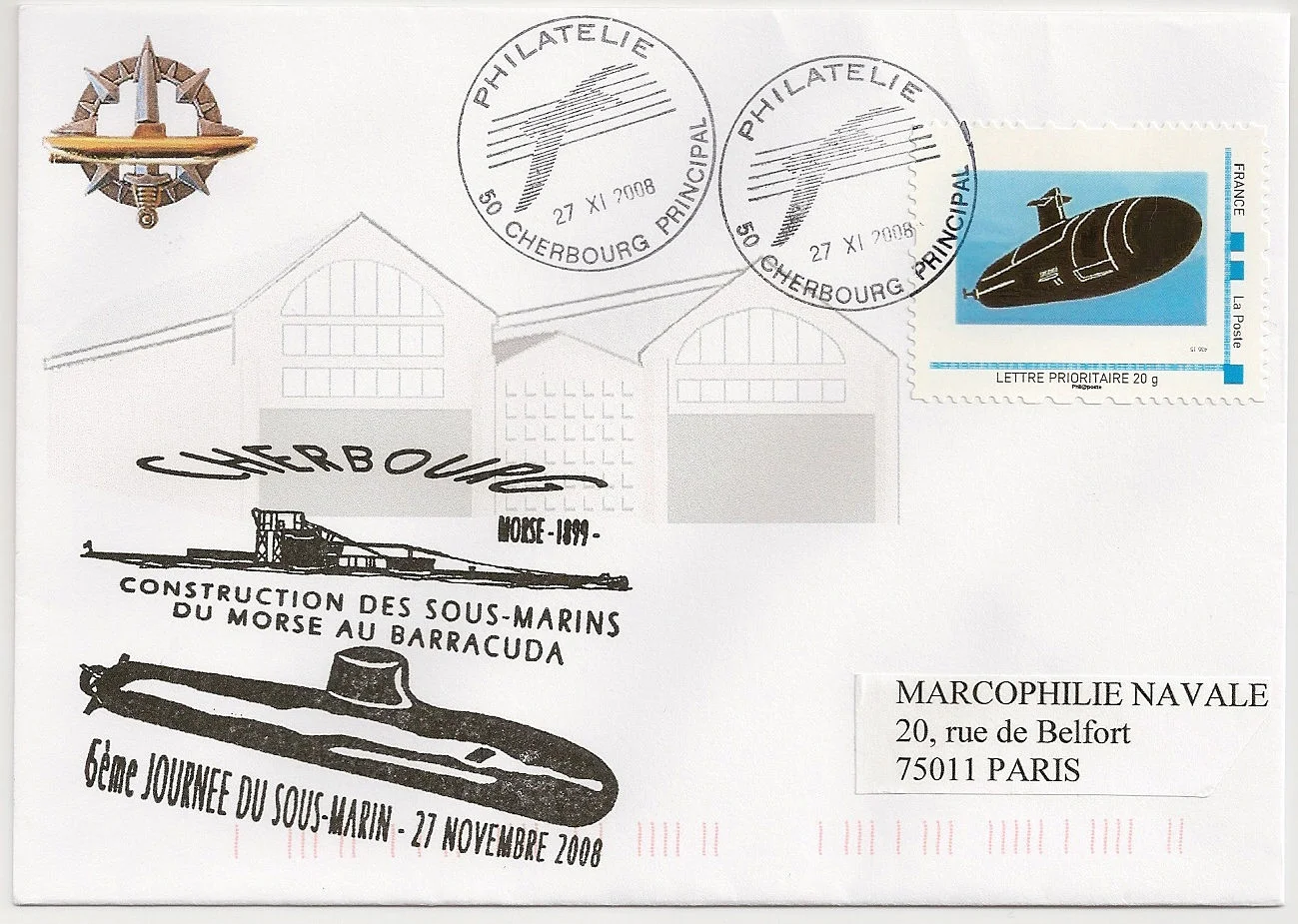 Parfois, les congrès et autres manifestations sont l’occasion pour la Poste de publier des timbres en rapport avec la manifestation ou d’apposer sur les enveloppes des flammes particulières. La journée annuelle du sous-marin n’a pas fait exception.