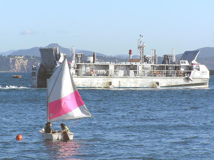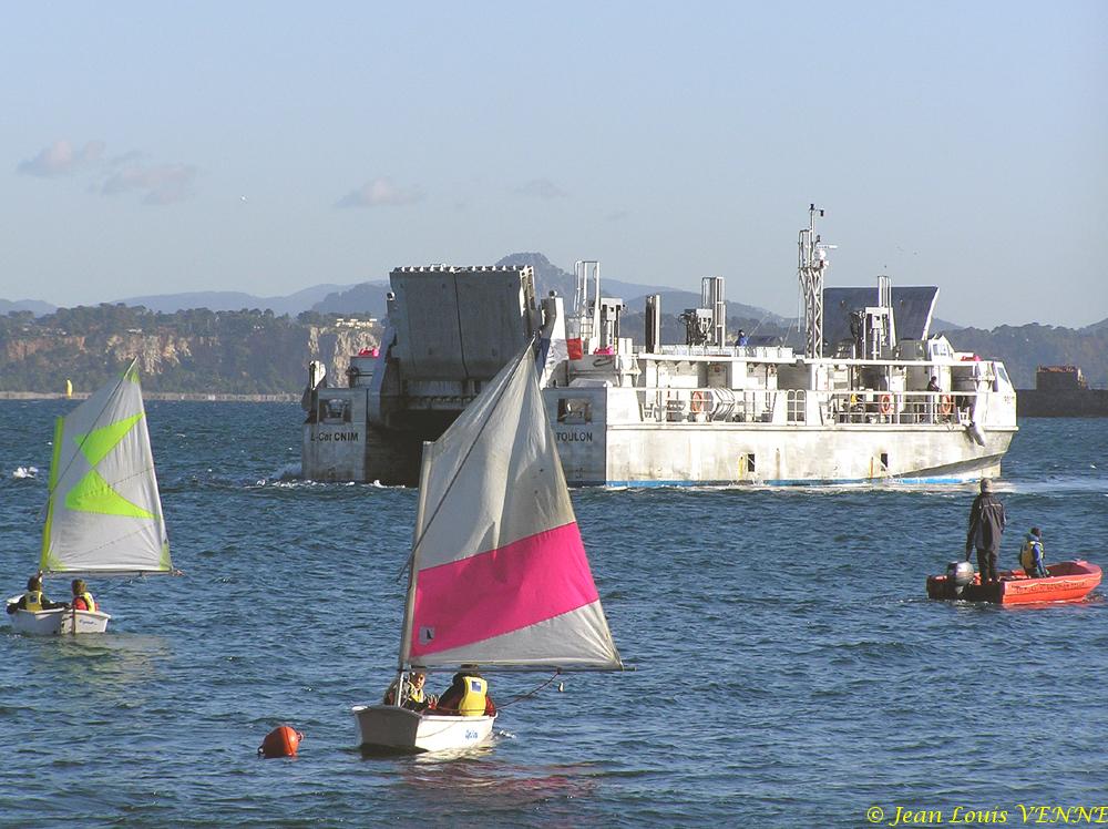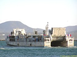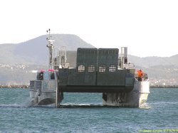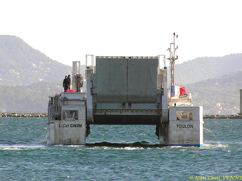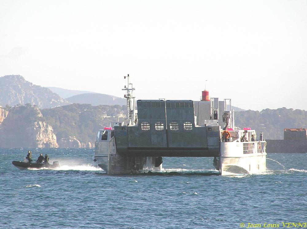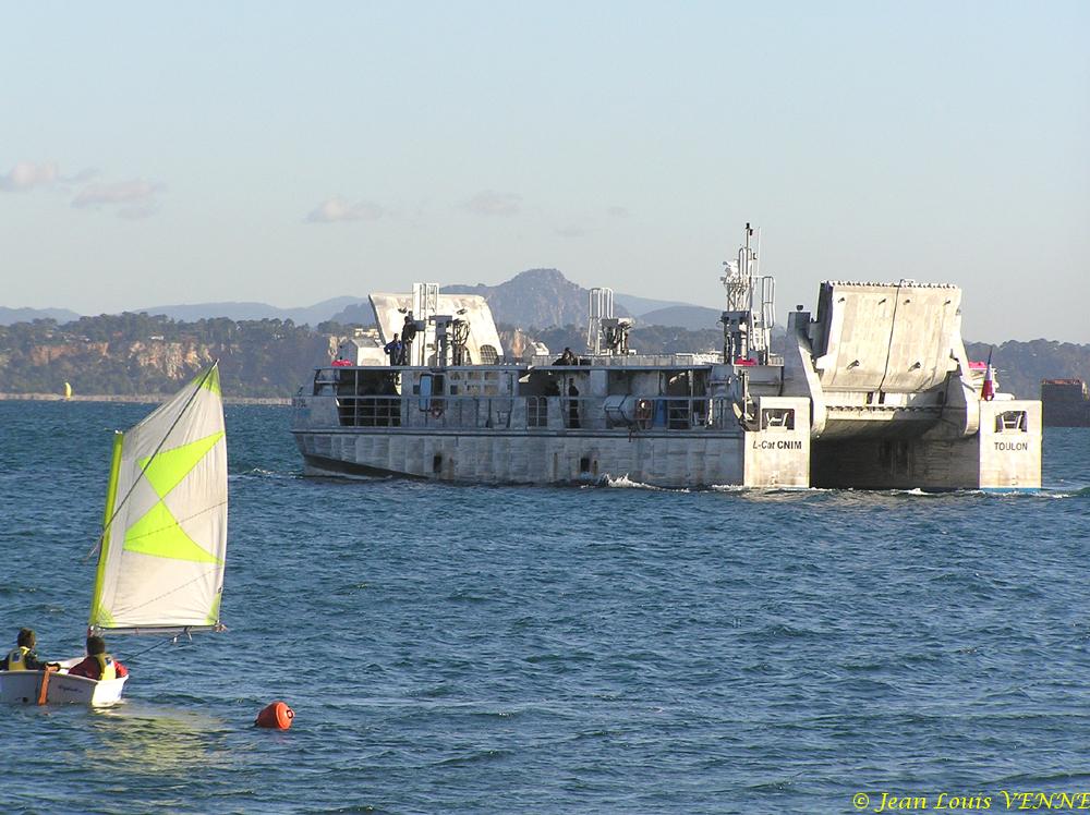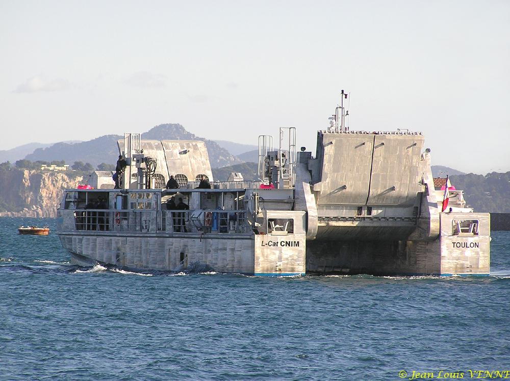 Le LCAT, le prototype d’engin de débarquement développé par la CNIM, effectuait cette fin de semaine des essais de présentation à St Mandrier sur Mer. Ces tests, effectués à pleine charge (plus de 100 t), étaient aussi destinés à entraîner l’équipage en vue des essais avec la marine nationale. Ces derniers sont actuellement prévus de commencer avant la fin de l’année.