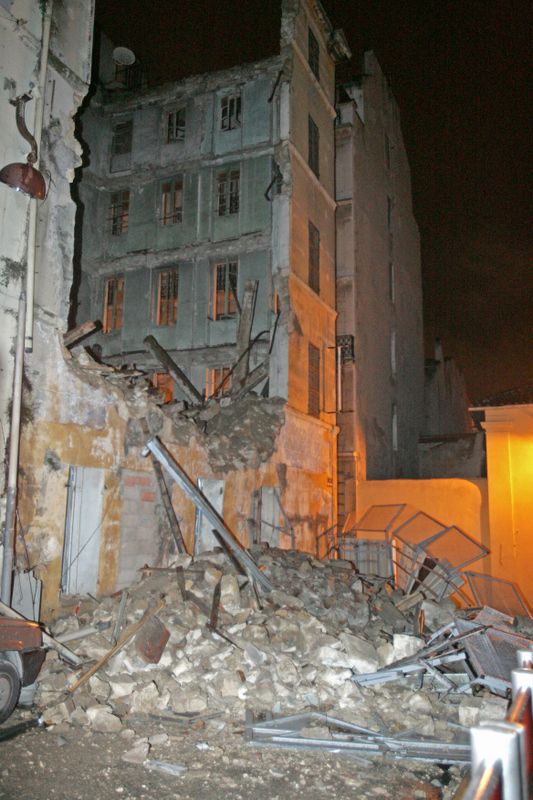 Appelés vers 5 h30 pour matériaux menaçant de tomber, les marins pompiers ont trouvé à leur arrivée un immeuble totalement détruit. Il s’agissait d’un bâtiment d’habitation désaffecté depuis une dizaine d’années. Des travaux étaient prévus dans les jours prochains. Les marins pompiers ont fait évacuer l’immeuble et l’hôtel situés de chaque coté du bâtiment sinistré. 34 personnes ont été regroupées au point de rassemblement des victimes, mais aucune n’est blessée. Des recherches à l’aide de caméra thermique et de l’équipe cynophile ont confirmé qu’il ne restait personne dans les décombres.