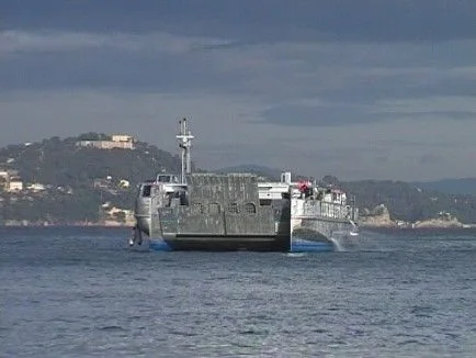 Les essais du L-CAT, le Landing Catamaran, développé par la CNIM et construit par les chantiers Gamelin de La Rochelle, se poursuivent en rade de Toulon.