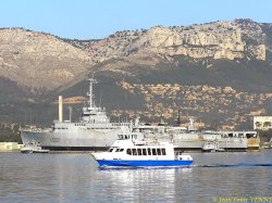 Ce mardi matin, l’ex-Ouragan a été transféré à Brégaillon (La Seyne sur Mer) où il restera embossé en attendant d’être déconstruit.
