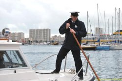 Embarquement sur une vedette pour rejoindre le Guépratte