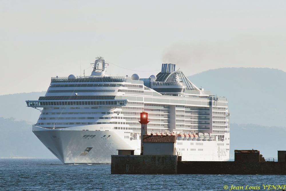 Le navire de croisière MSC Fantasia, qui devait effectuer une escale à Marseille, a finalement accosté à La Seyne sur Mer en raison du mistral et de mouvements sociaux.