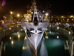La disponibilité du bassin n°3 en Penfeld a été mise à profit pour réaliser un dernier passage au bassin. Les six semaines passées en cale sèche ont permis de dégager le potentiel nécessaire pour que le bâtiment atteigne sereinement sa date de retrait du service actif. Les interventions classiques de bassin ont été réalisées : nettoyage de la carène, visite des accessoires de coque et des presses étoupes de ligne d’arbres. L’équipage fut fortement mobilisé puisque près de la moitié des lignes de travaux furent menés par les marins du bord.