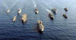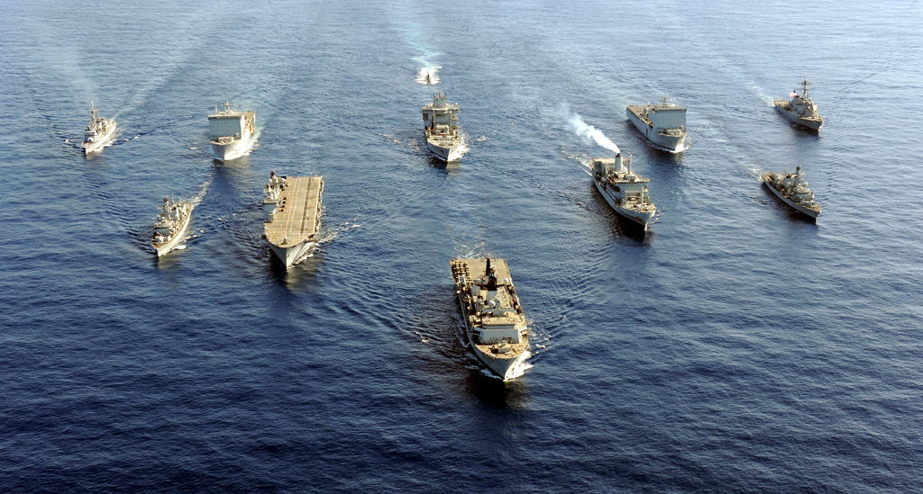Les bâtiments de la Royal Navy et la frégate Dupleix, participant à la mission TAURUS 09, se sont alignés pour une photo.