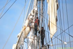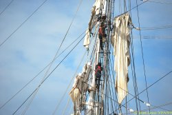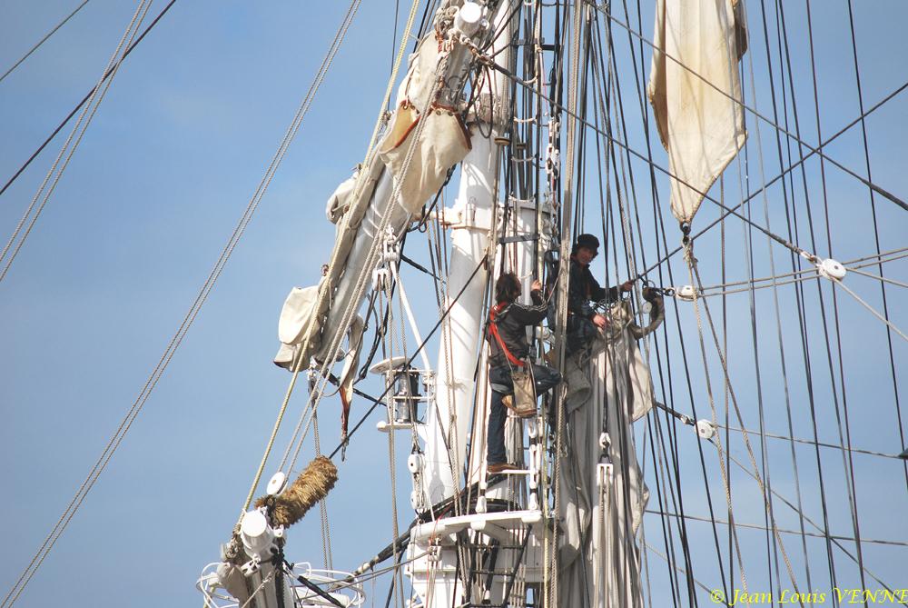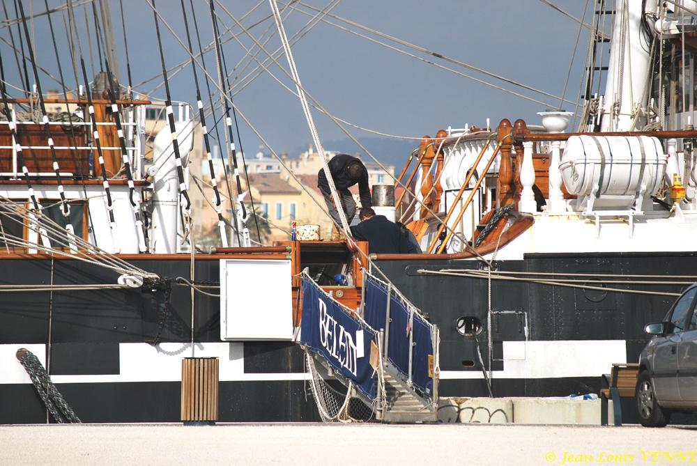 A La Seyne-sur-Mer, le Bélem, le plus ancien trois-mâts français encore en activité, qui y a passé tout l’hiver, se prépare à reprendre la mer. L’équipage met actuellement la dernière main en installant les voiles sur les vergues.