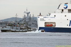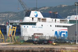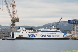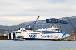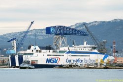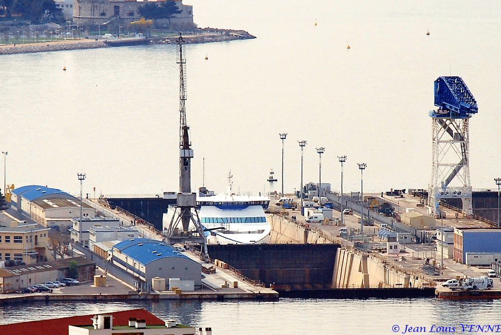 Après 3 semaines d’entretien passées dans un bassin de DCNS à Toulon, et avoir refait sa peinture, le Liamone est sorti mardi matin et a rejoint le port de commerce.