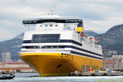 Après 3 semaines d’entretien passées dans un bassin de DCNS à Toulon, et avoir refait sa peinture, le Liamone est sorti mardi matin et a rejoint le port de commerce.