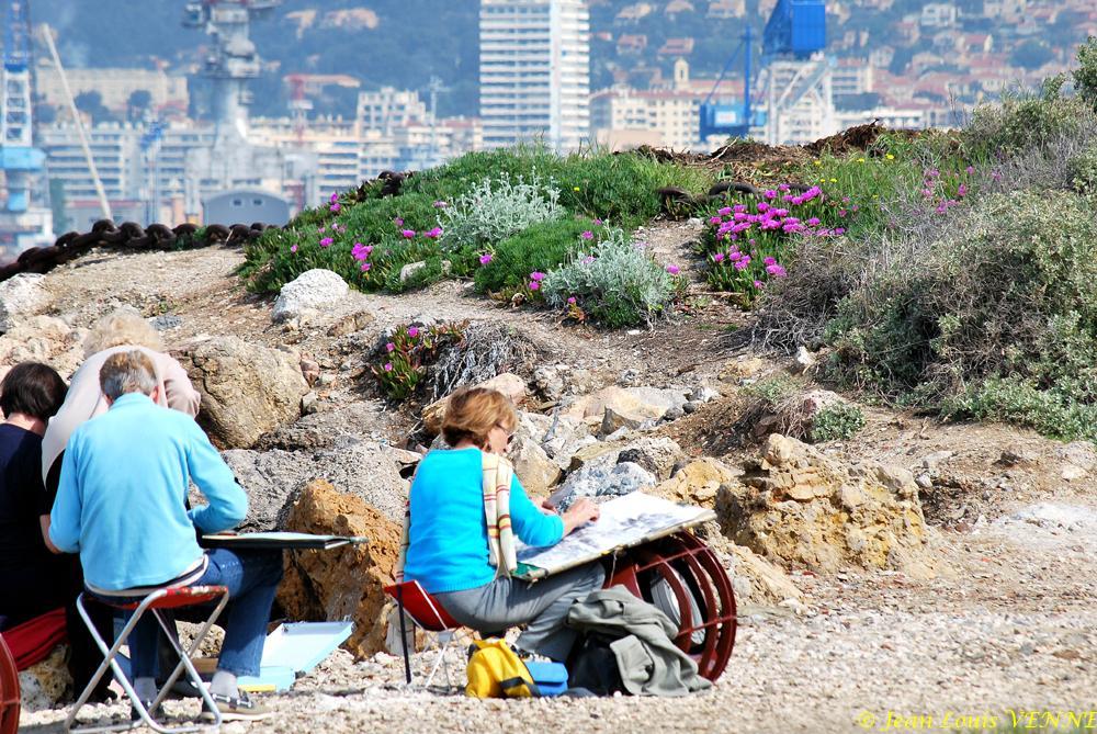 Jean-Louis Venne, en revenant de prendre des photos de la Jeanne d’Arc et du La Fayette mouillés devant le Mourillon, a fait un détour par le parc de la Tour Royale. Récemment ouvert au public, cet ancien terrain militaire surprend par son calme et la beauté presque sauvage des lieux. De nombreux peintres et spécialistes du fusain viennent en profiter.