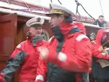 Le directeur de l’Ecole Navale, CA Soudan (ndlr : CA pour contre-amiral), les familles et amis des marins des goélettes font leurs au-revoirs à nos bateaux pour la course. L’Etoile et la Belle Poule vont rejoindre Vigo en Galice espagnole pour prendre la ligne de départ de la TSAC 2009. Le temps de la course, elles porteront sur leur grand-voile les numéros TSF30 et TSF31.