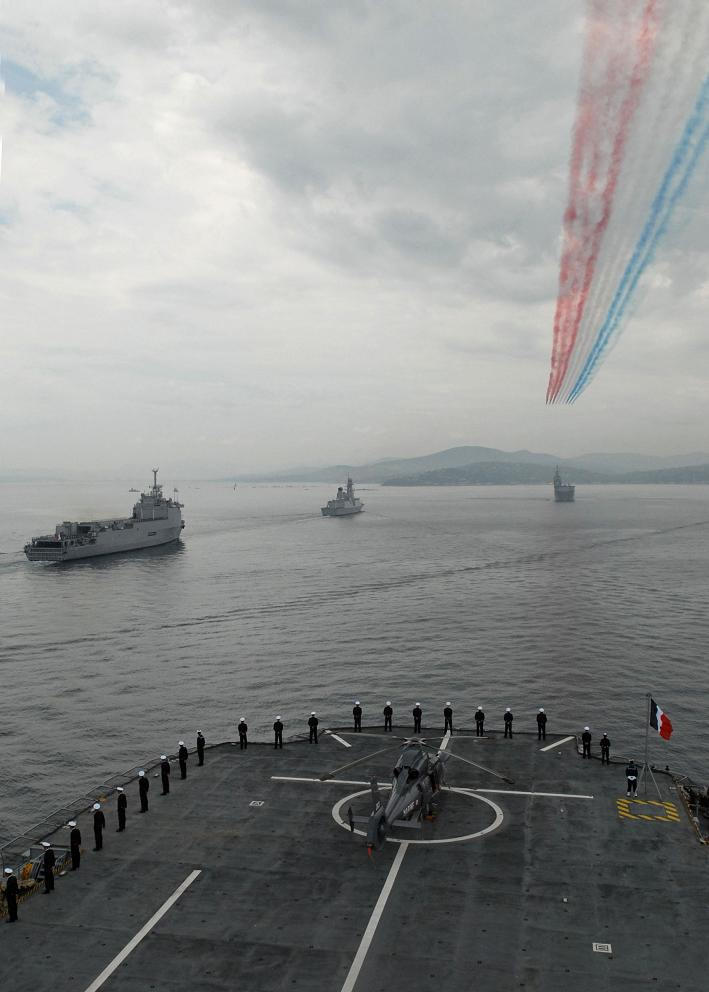 Images prises par les photographes de la Marine Nationale depuis le pont du Mistral.