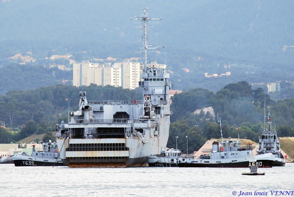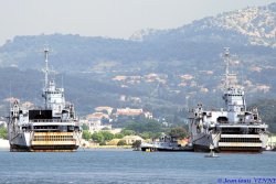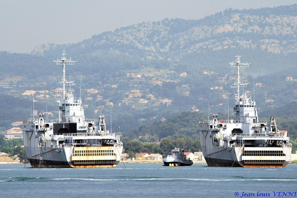 L’Orage, le transport de chalands de débarquement désarmé la semaine dernière, a rejoint ce mardi l’Ouragan, son sister-ship, au mouillage devant Brégaillon.