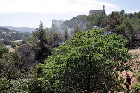 Le feu se déclare dans une végétation basse et progresse vers les pins qui entourent l’église au sommet de la colline. Très vite, 23 engins, 68 marins-pompiers et un hélicoptère bombardier d’eau (HBE) du BMPM sont sur place.