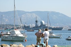 La marine nationale a installé il y a quelques jours la coque de l’ex-frégate anti-aérienne Duquesne pour protéger le plan d’eau de l’école de plongée de Saint-Mandrier.