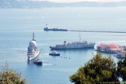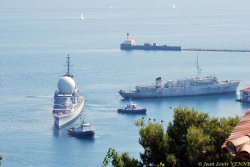 La marine nationale a installé il y a quelques jours la coque de l’ex-frégate anti-aérienne Duquesne pour protéger le plan d’eau de l’école de plongée de Saint-Mandrier.