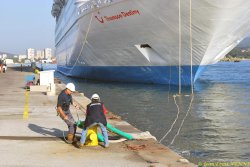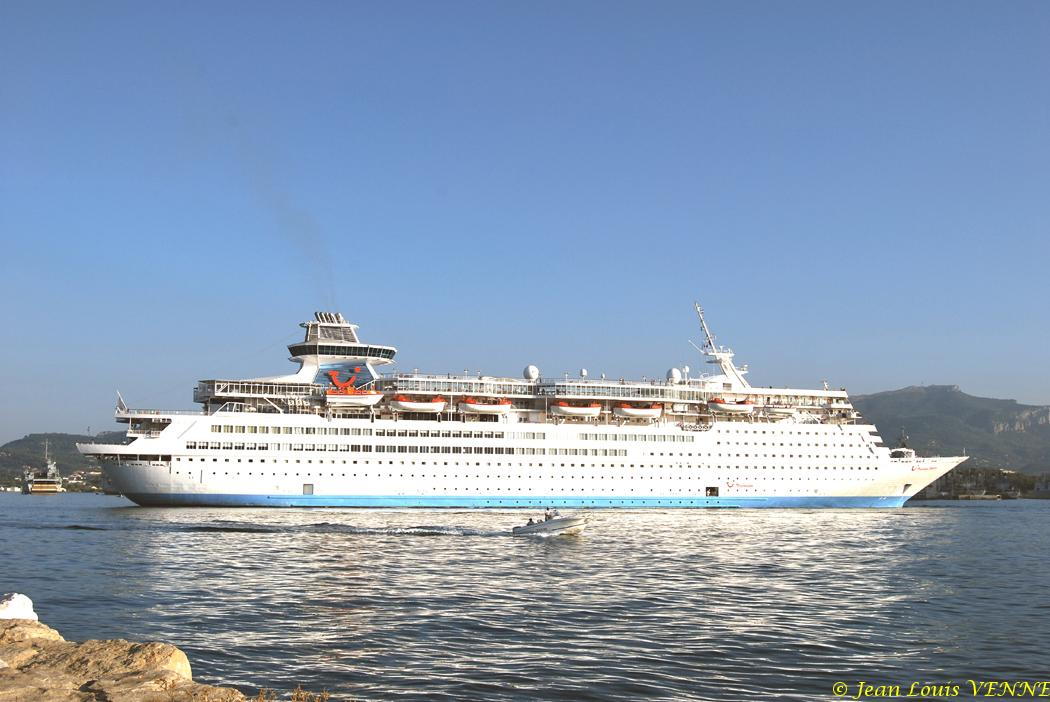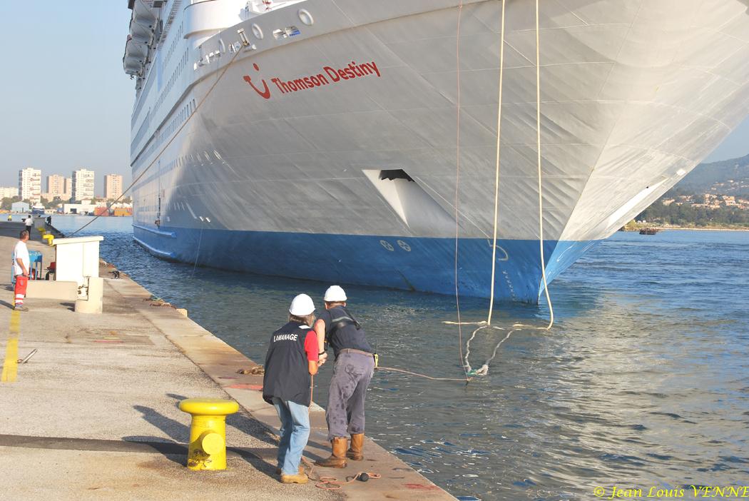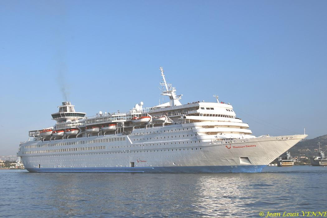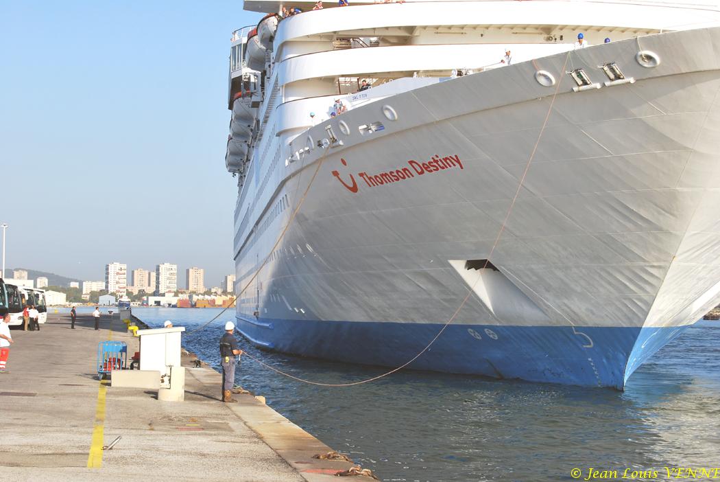 Le paquebot Thomson Destiny est arrivé mercredi vers 8 heures 30 dans le port de La Seyne sur mer. Les passagers ont pu admirer au passage les nombreux navires à quai de la marine nationale. Le paquebot a effectué, seul et sans remorqueur, un retournement majestueux, pour accoster tribord à quai. Les croisiéristes ont bénéficié d’un accueil spécialement soigné : navettes vers le centre-ville, informations ...