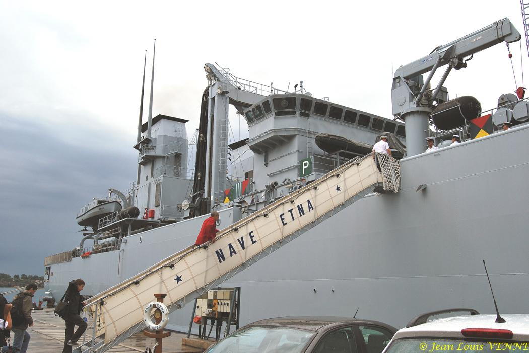 Jean-Louis Venne nous emmène visiter l’Etna, un navire de ravitaillement et de commandement de la marine italienne. Il est actuellement le navire-amiral de l’exercice Loyal Midas qui se déroule au large des côtes varoises.