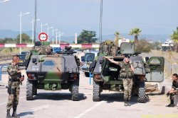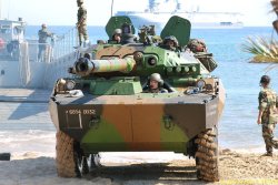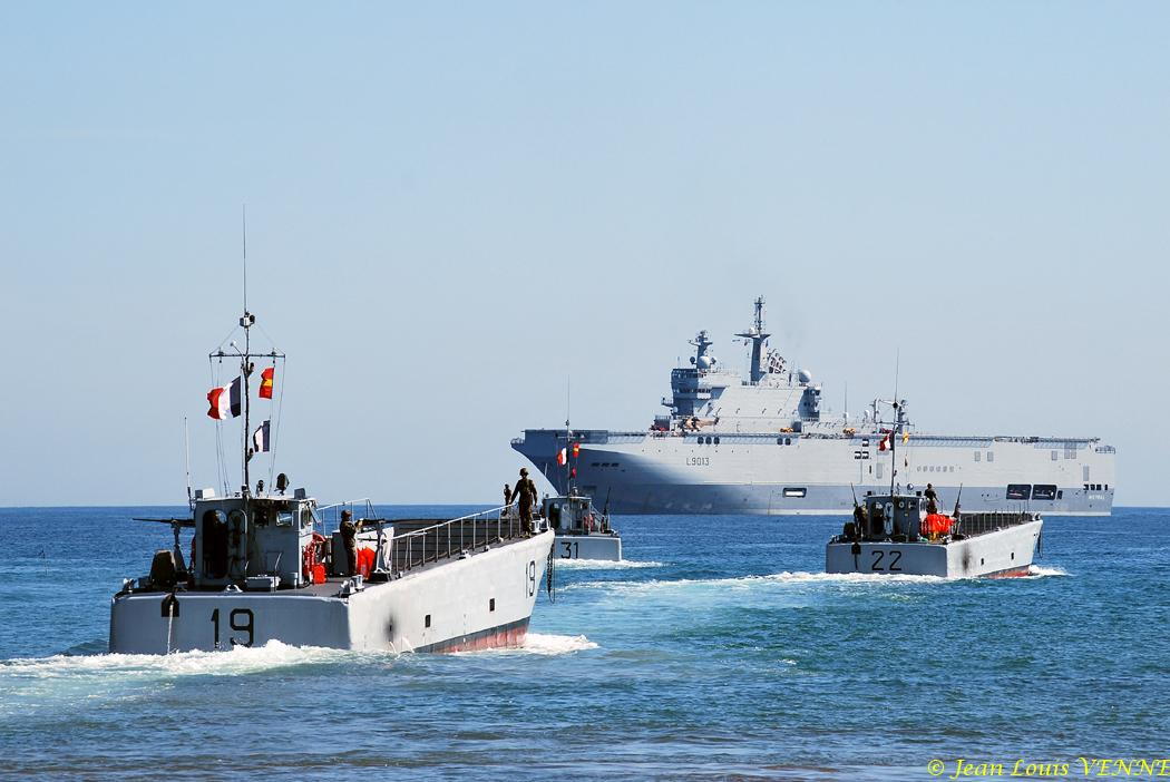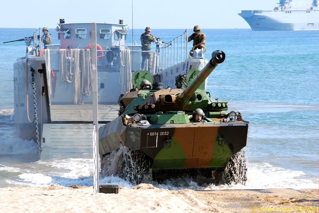 Voici des images prises par Jean-Louis Venne du débarquement des véhicules de l’armée de terre sur la plage de St-Aygulf à Fréjus.