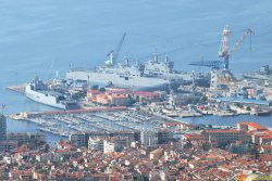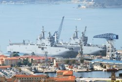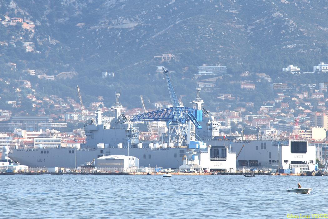 Jean-Louis Venne a pu saisir cet événement : pour la première fois, les 2 BPC de la marine nationale, le Mistral et le Tonnerre, sont ensemble au bassin.