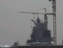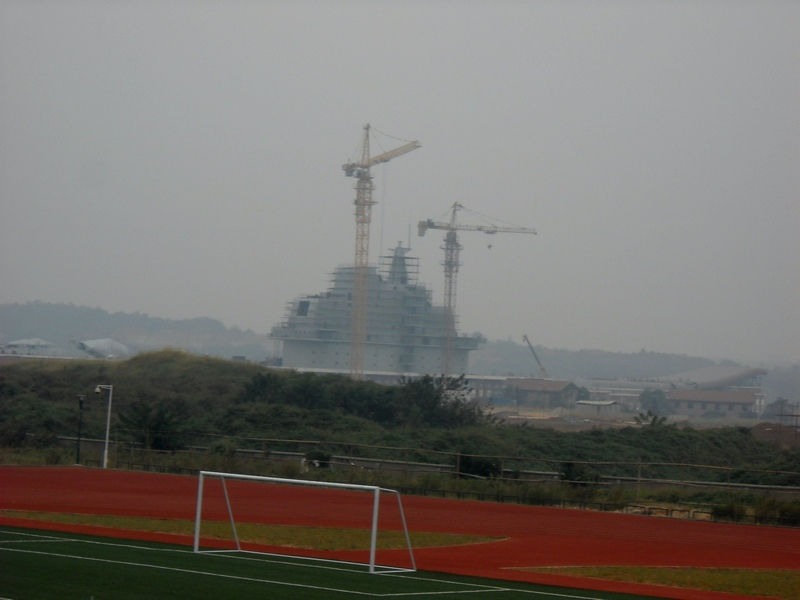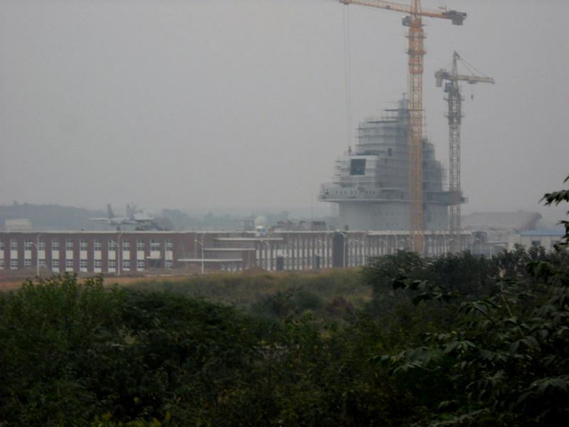 Il semble que cette maquette à l’échelle soit aussi bien destinée à mettre au point l’aménagement intérieur de l’ilot, l’implantation des antennes, qu’aux essais du matériel électronique. Les images monteraient dans ce cas, l’aspect final du véritable porte-avions. Les Chinois ont reproduit l’environnement pour rendre les tests plus réalistes.