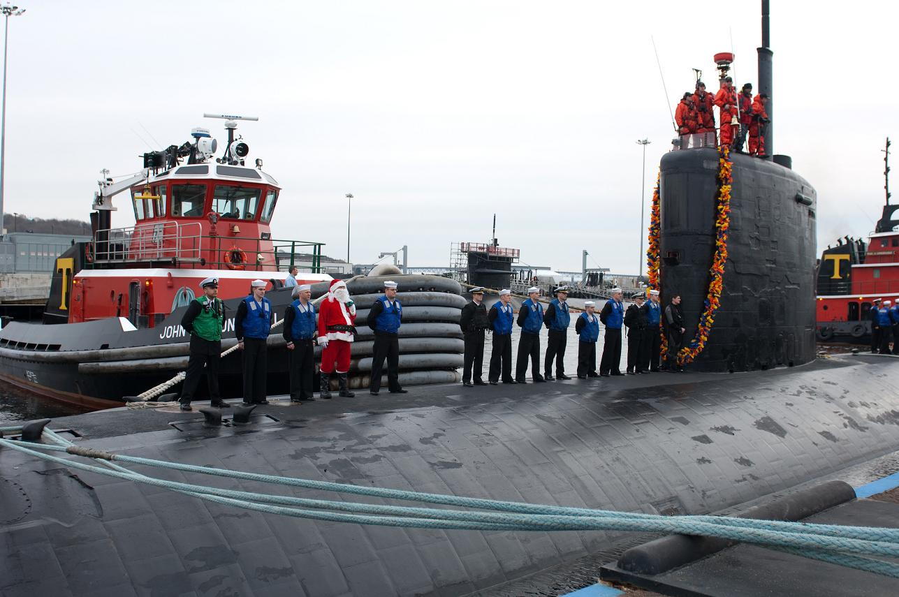 Ainsi, lors du retour de mer de l’USS Miami le 2 décembre dernier, c’est le Père Noël qui faisait partie de l’équipe de plage, prêt à donner la main pour passer les aussières.