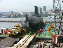 L’Arsenal de Marinha do Rio de Janeiro (AMRJ) a effectué, entre le 25 et le 28 janvier 2010, l’opération de mise à l’eau du sous-marin Tapajó, après la fin d’une période d’entretien majeur.