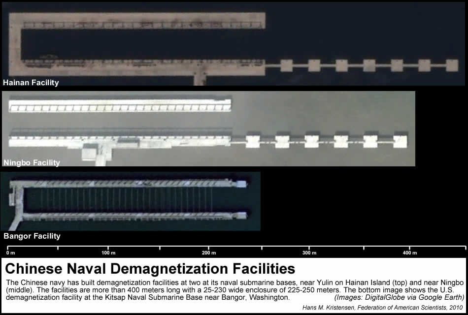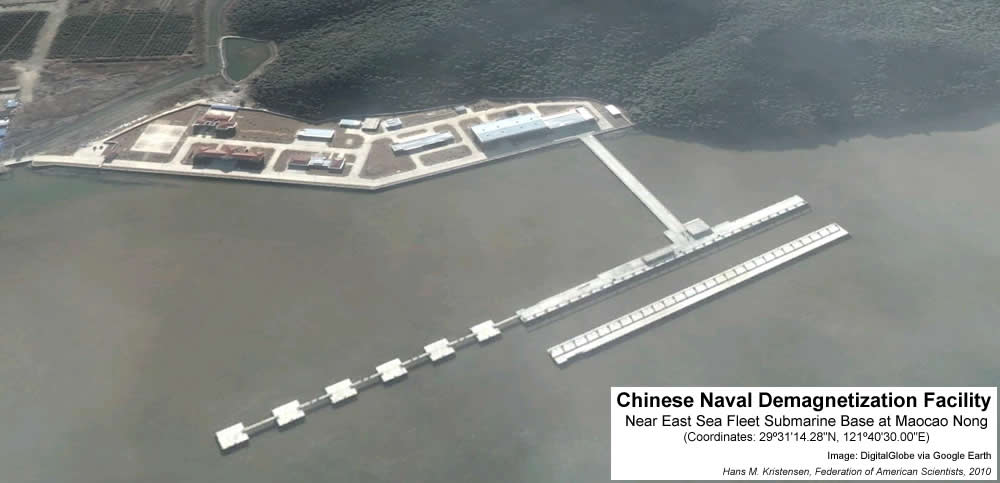 La nouvelle installation de démagnétisation est située à moins de 10 km de la base des sous-marins chinois Kilo, à Maocao Nong, à environ 40 km au sud-est de Ningbo dans la province de Zhejiang.
