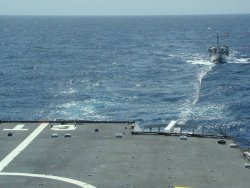 Il a été établi que le dhow avait perdu son hélice, ce qui rend toute réparation impossible en mer. Naturellement, le Guépratte a offert de remorquer le dhow.