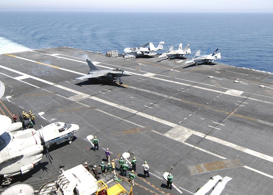 Le Rafale, un chasseur de 4è génération pouvant mener à la fois des missions anti-aériennes et d’attaque au sol depuis le porte-avions Charles de Gaulle, effectuait une qualification sur porte-avions à bord du Truman.