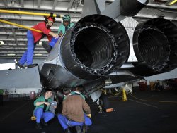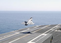 "La marine nationale a effectué de nombreuses qualifications sur porte-avions à bord de porte-avions américains. Cependant, c’est la première fois qu’un échange de moteur sur un appareil d’une marine étrangère est effectué à bord d’un porte-avions américain," a déclaré le Cmdr. Tim Hill, commandant en second de l’escadrille VFA-32 et officier de liaison pour les exercices d’interopérabilité avec la marine nationale. "C’est une étape importante vers la capacité de mettre en œuvre une escadrille française sur un porte-avions américain."