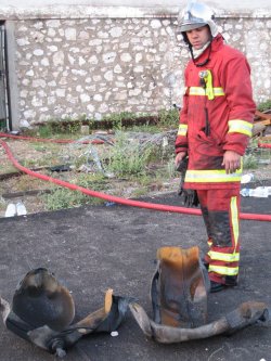 Un nombre important de bouteilles de gaz nécessaires au fonctionnement de l’atelier (Oxygène, Propane et Acétylène) soumises au feu ont provoqué une dizaine d’explosions. Ces explosions extrêmement dangereuses de part l’effet balistique (projection de la bouteille) ont obligé les intervenants à la plus grande prudence. Les marins-pompiers ont immédiatement établis une dizaine de lances dont deux en aérien (c’est-à-dire depuis une échelle) afin de maîtriser le sinistre et de refroidir le stock de gaz.