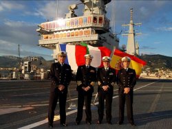 Le 22 novembre dernier, le porte-aéronefs italien Cavour a accosté dans le port de Toulon. Il a accueilli une réunion informelle des commandants des flottes d’Italie, de France et d’Espagne. La rencontre était présidée par le Commandant en Chef de l’Escadre Navale italienne, l’amiral d’escadre Luigi Binelli Mantelli.