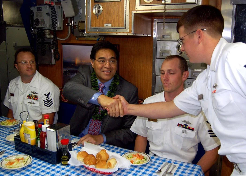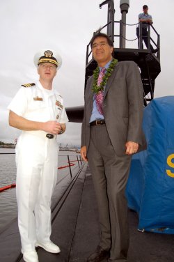 Le maire d’Honolulu, Mufi Hannemann, sur le pont de l’USS Honolulu (SSN 718). Photo : US Navy