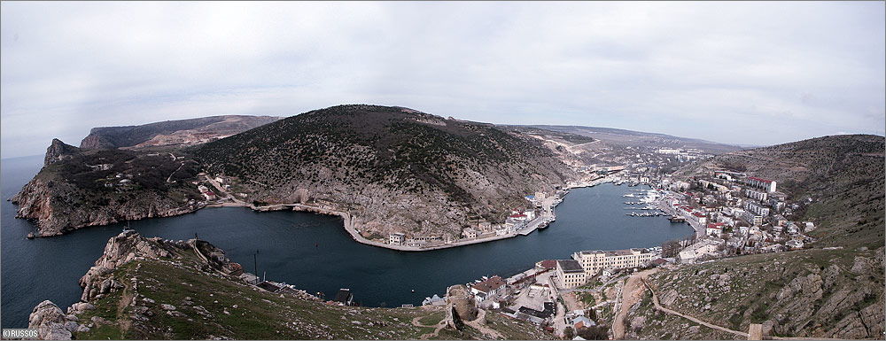 Débouché sur la mer Noire, le chenal, la ville. Au centre, la colline sous laquelle ont été construits l’arsenal, le canal et les chantiers de réparation, d’approvisionnement de sous-marins