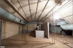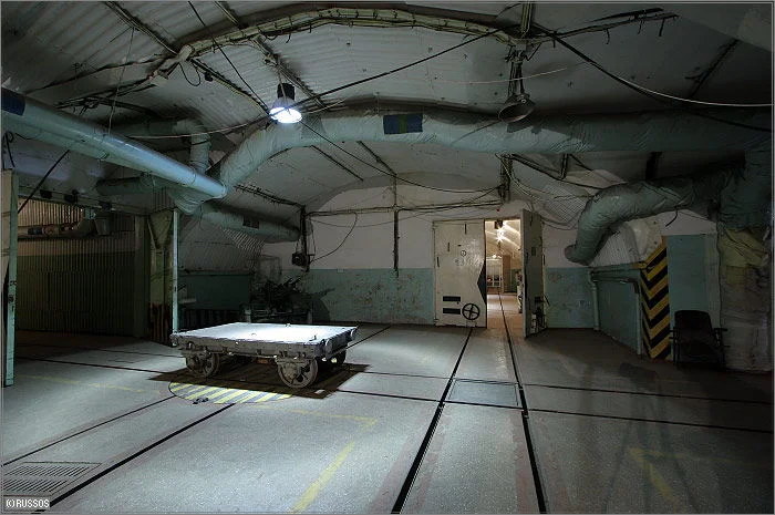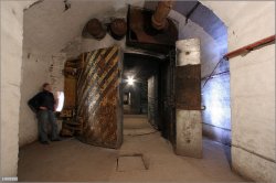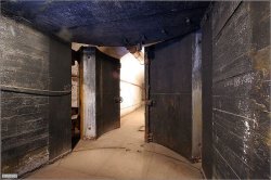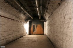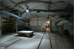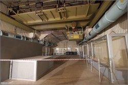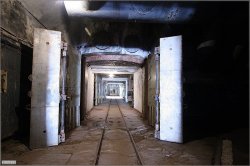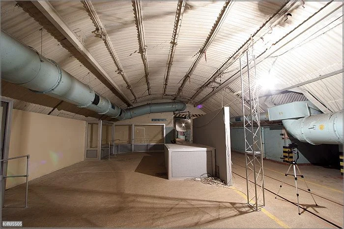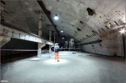Ici, on préparait les armes nucléaires. Au premier plan, on peut voir les portes pare-souffles (16t chacune) et au loin la zone confinée. Le sas est juste derrière les portes(?).