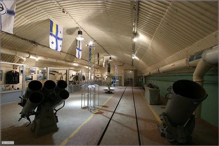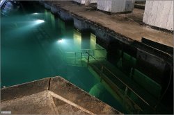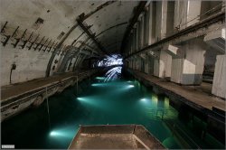 Ces données proviennent d’un dépliant en ukrainien sur la base et l’objet 825 (NdT : terme utilisé pour désigner une base militaire .. ;) – début de construction en 1957, achevée en 1961 – la construction a été entamée par des militaires puis poursuivie par des ingénieurs des métros de Moscou, Tbilisi et Kharkov – l’usine et l’arsenal constituaient un abri anti-nucléaire de 1ère catégorie pour 3000 personnes pendant 30 jours – l’épaisseur de roche au dessus de la base atteint 126 m au point le plus haut – en cas de confinement la base pouvait abriter 9 sous -marins des projets 613 Whiskey et 633 Romeo (dont un au bassin) – longueur du canal 505 m, largeur du bassin de 6 à 8,5 m, profondeur de 6 à 8,5 m – le site a été déclassé en 1995, transformé en musée en juin 2003 – les parties confinées de l’usine et les réserves de mines et de torpilles sont fermées. On peut visiter l’arsenal, le bassin, et le canal aux environs du bassin.