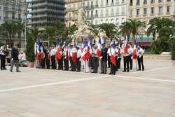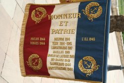 Pour cette première cérémonie en public, le drapeau du 1er Régiment de fusiliers-marins, actuellement confié à la garde de l’école des fusiliers-marins, avait été apporté depuis Lorient.