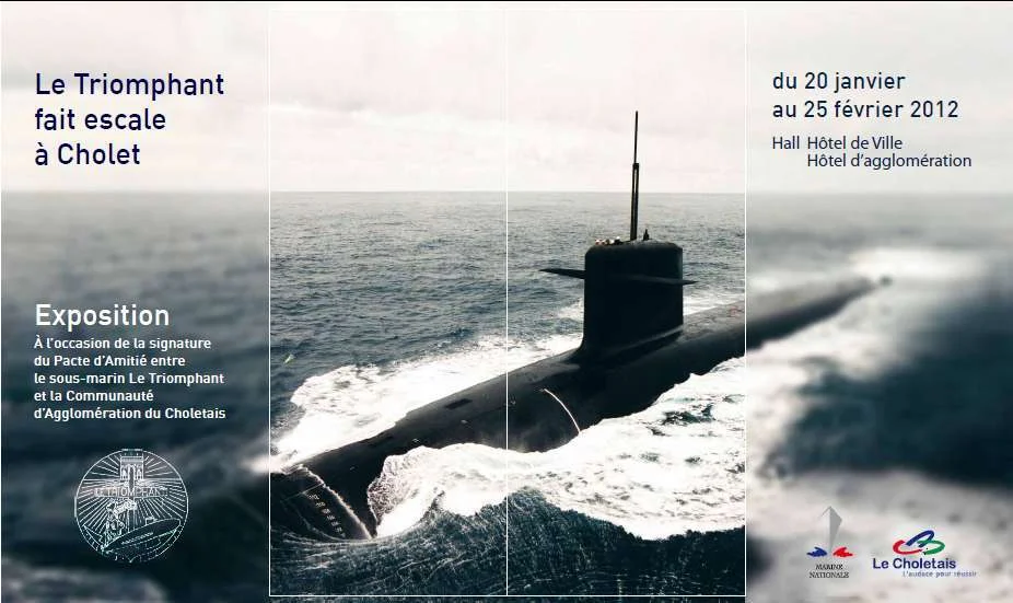 Du 20 janvier au 25 février 2012, la galerie de l’hôtel de ville de Cholet accueille une exposition pour découvrir au fil d’une trentaine de photos et de maquettes le sous-marin nucléaire lanceur d’engin Le Triomphant .